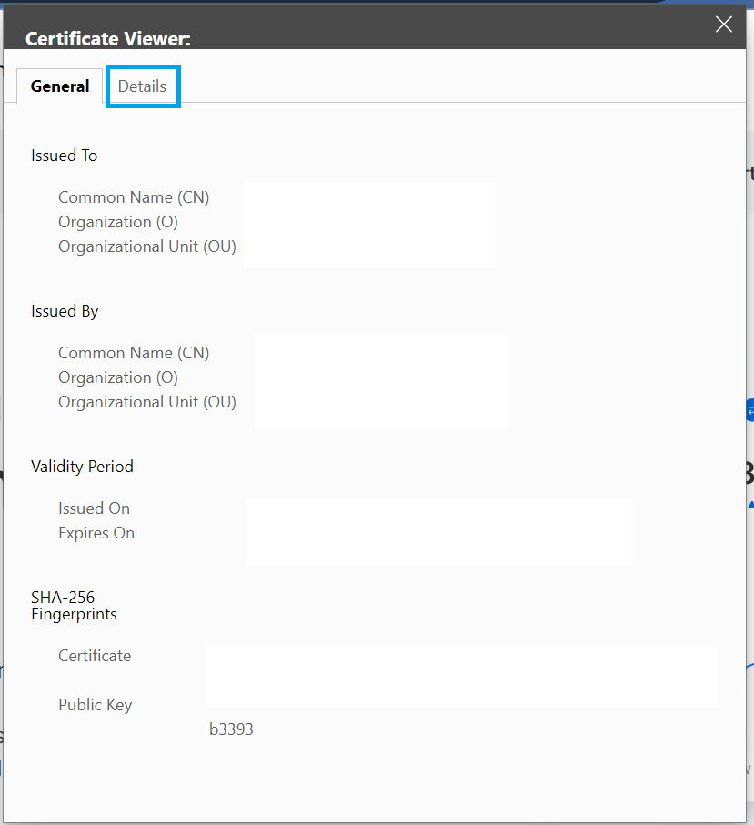 - I vinduet med certifikatdetaljer skal du gå til fanen Detaljer