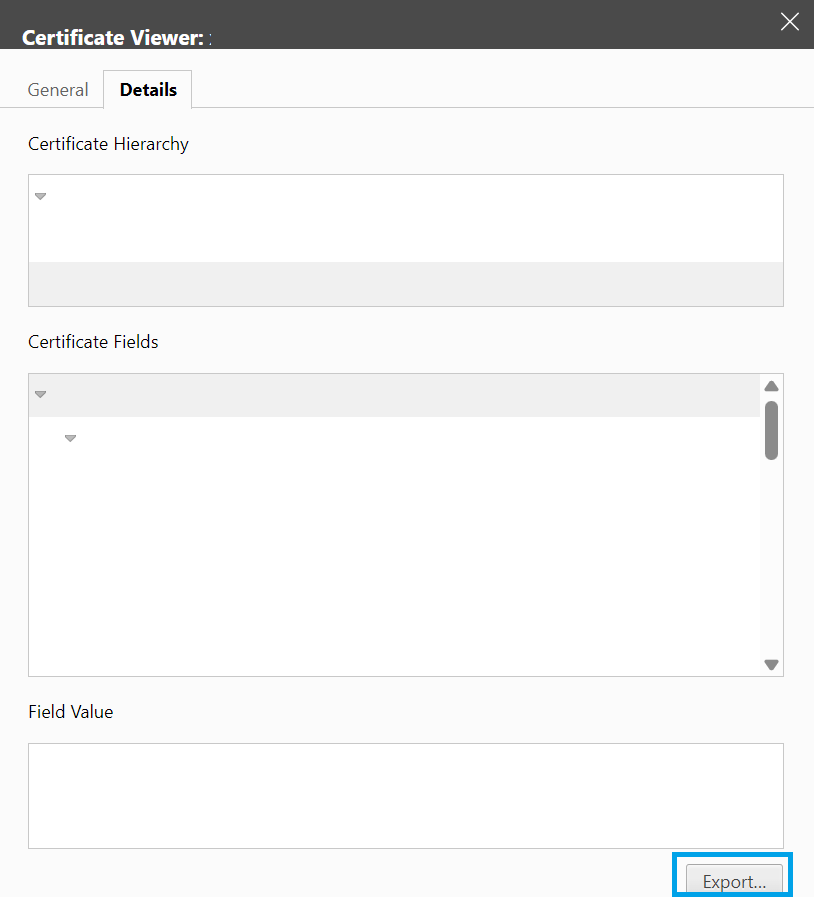 - Klik på Eksportér for at downloade certifikatet til dit system