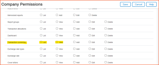 A Xe Global Business Payments használatához szükséges Intacct jogosultságok